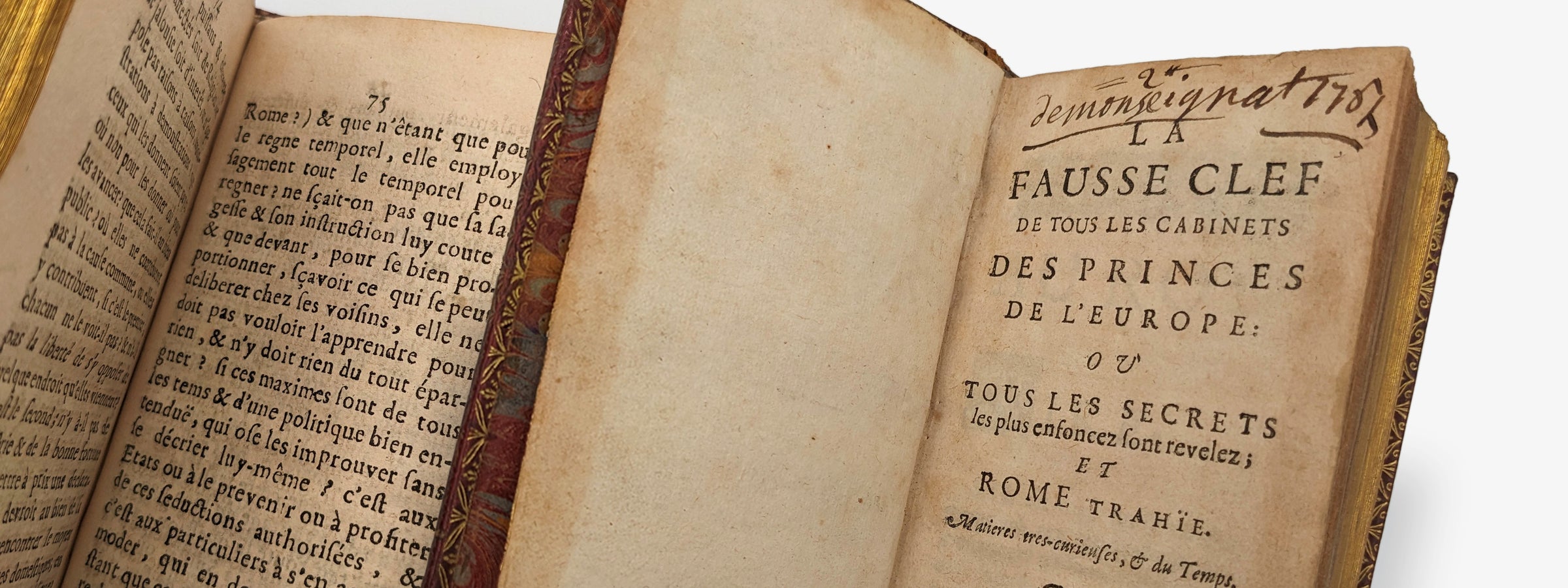 La fausse clef de tous les cabinets des princes de l’europe : ou tous les secrets les plus enfoncez sont revelez; et Rome trahïe. Matiere tres-curieuse, & du temps.